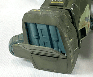 水上での高速移動を実現する脚部にあるハイドロジェットの為の圧縮タンクです。ホースは左右の足に繋がってます。取り外しも可能です。